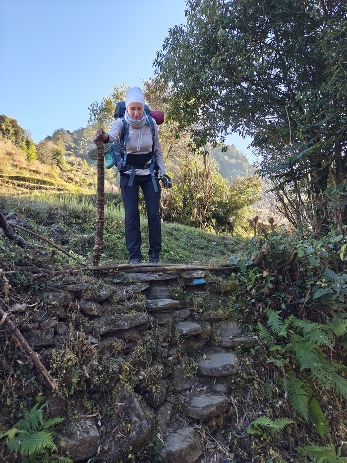 Дорога в Swanta - это практически один спуск, преимущественно по каменным лестницам, но встречалась и влажная грунтовочка в лесу. В этом направлении практически никто не идет, за всю дорогу мы встретили всего пару треккеров.