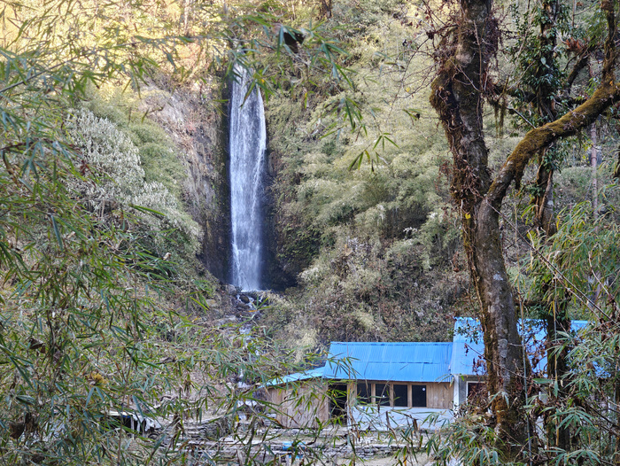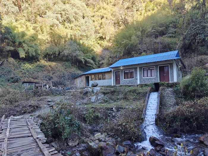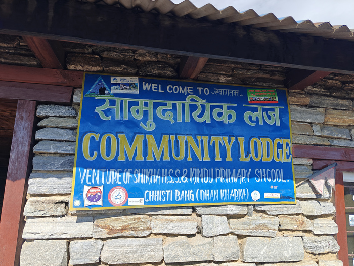 Около часа дня мы поднялись в Chistibang. Тут всего два лоджа - нижний Hotel Rock Land и верхний Chistibang Community Lodge. Управляют обоими лоджами молодые ребята, тут же живут и пасут скот. Периодически забивают скотину и вялят мясо, готовят колбасу, попробовать нам, к сожалению, не удалось, сказали, что еще не готова.