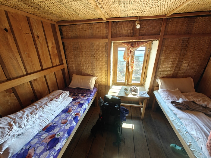 Нам дали хорошую комнату, в которую светило солнце и там было даже тепло, а еще через нашу комнату проходила труба от печки и это ее немного согрело вечером! Заказали на обед два дал бата и отправились принять горячий душ и постирать вещи. В душевой было маленькое окошко и отсутствие солнца, поэтому там было очень холодно, но горяченная вода спасла ситуацию!