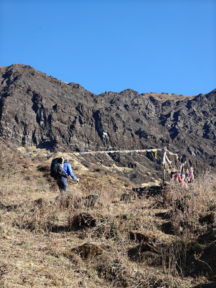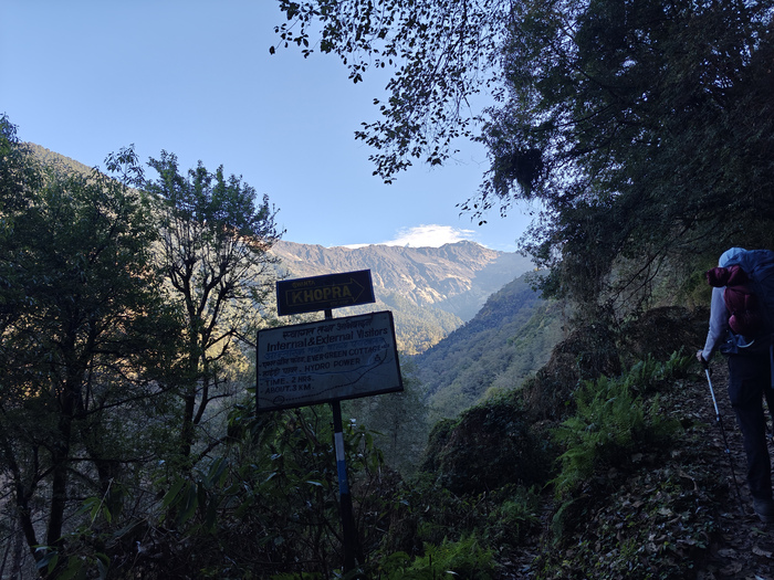 Отдали за лодж и еду 6500 NPR, а так же взяли еще с собой 4 сникерса по 250 NPR. Сегодня нам предстоял короткий переход, но с подъемом почти на 700 метров, а вот завтра радиальный выход на весь день, решили, что сникерсы лишними не будут. Отправились в путь около 8-45 утра.