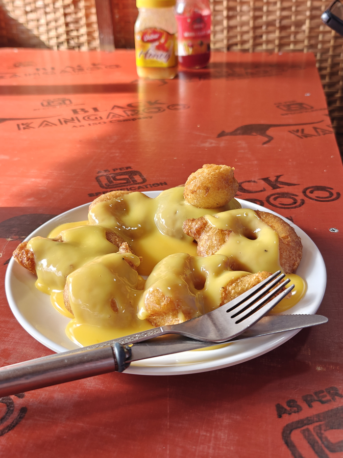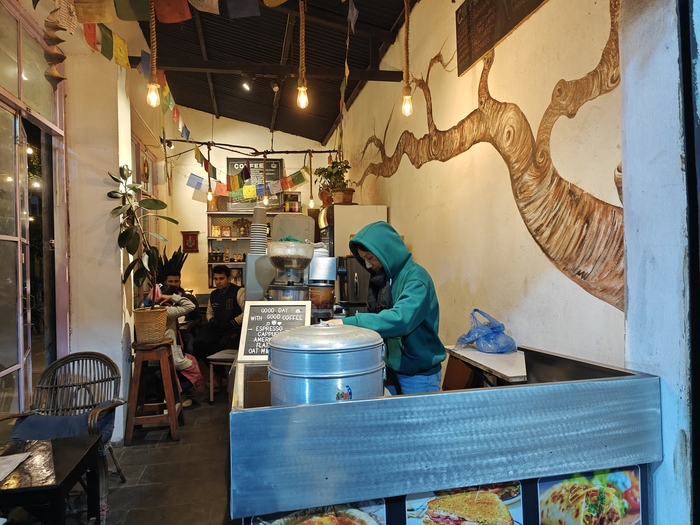 Завтрак заказали на 7 утра, взяли два set breakfast по 650 NPR. Все по классике, хлебушек, жареная картошечка с овощами и вареные яйца. Ну и кофе, естественно.