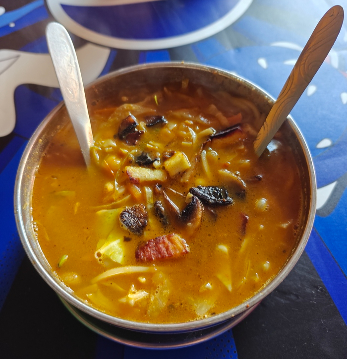 В ожидании ужина заболтался с индийцем, болтали обо всем на свете, и про горы, и про политику, и про наши страны, про работу, про историю, про религию, почти час стояли на улице и даже не замерзли от такой оживленной беседы, которую прервал призыв к ужину. Сегодня по классике - дал бат, нужно хорошенько подкрепиться перед завтрашним выходом к озеру.