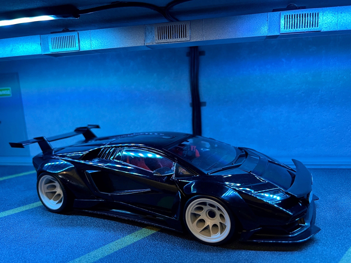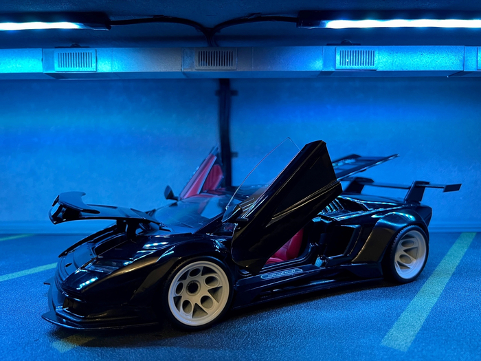 Увидел такого красавца в 3д и захотелось мне его на полку в 18 масштабе. Купил донора и понеслась. Это версия cannonball на основе нового countach 800