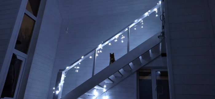 Кот знакомится с лестницей