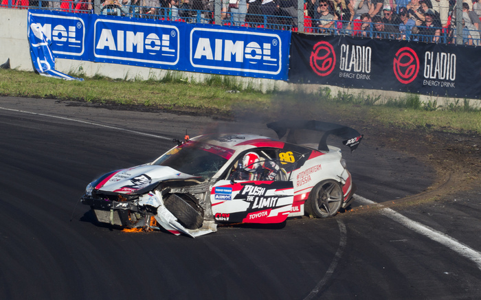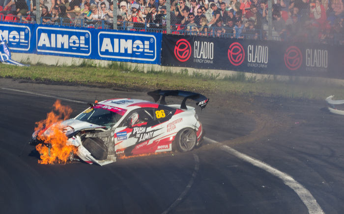 Никита Шиков на втором этапе RDSGP в Рязани при постановке дернул ручник, отпустил его, но колеса остались заблокированы и он, на скорости около 110 км в час поехал прямо в стену. После столкновения со стеной машина загорелась, пилот успел выскочить, спасатели быстро потушили машину. Выглядело это жутковато