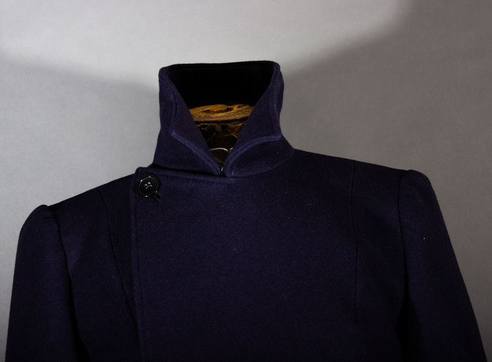 А еще обратите внимание на плечевой шов - он тоже уведен на спину. В современных пальто он делается проще - параллельно плечу.