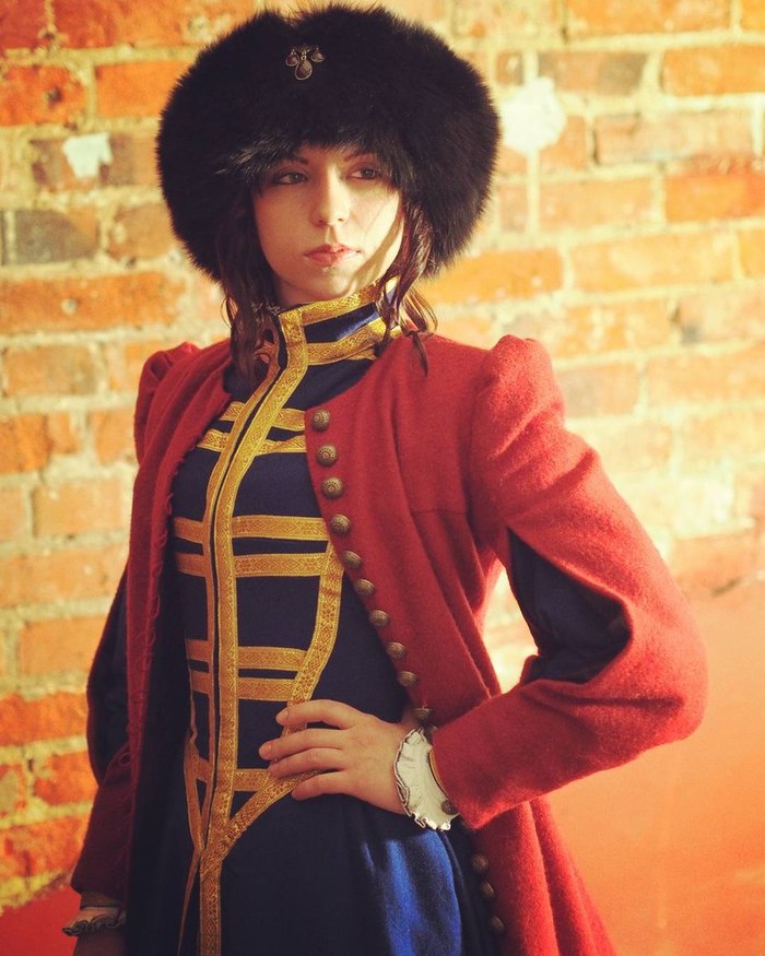 Для холодного времени года необходимо дополнительное утепление. Второе платье из толстой шерсти или пышный роб были признаны непрактичными и выбор остановился на изящном и удобном кунтуше и шапочке "а ля полонез".