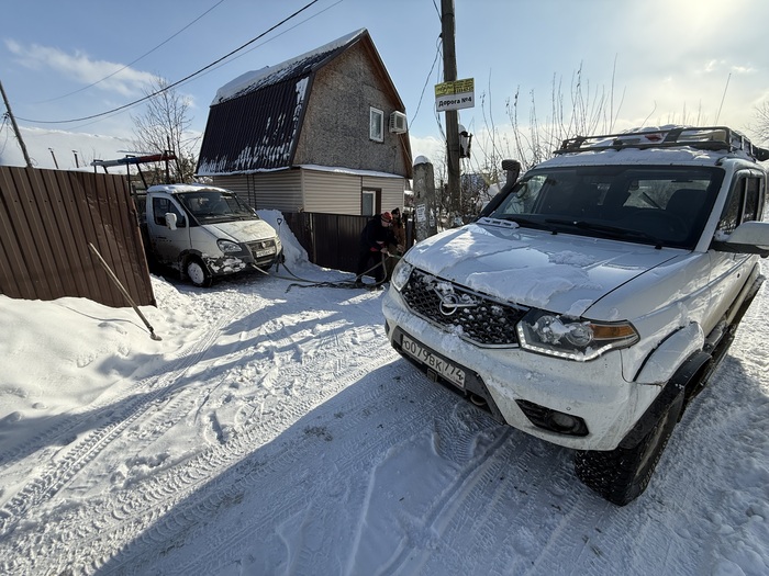 На следующий день (суббота) снова сообщение в чат взаимопомощи: в том же СТН и почти в том же месте сидит Газель. Вводная та же самая: выезжал, стянуло рыхлый снег, притерся к забору.