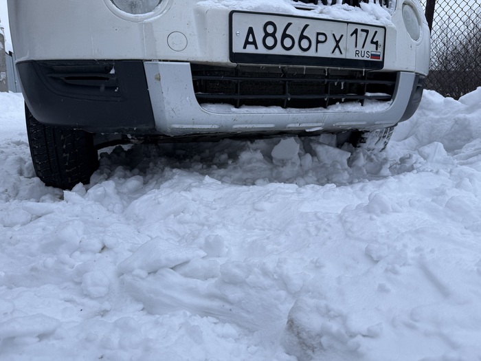 К сожалению не обходится без потерь: я отрываю задний брызговик вместе с креплением, видимо он попадает между льдом и колесом, что становится для него фатальным.