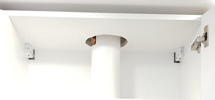 Не совсем понятно, почему задняя стенка отстоит от подвесов, обычно делается паз под заднюю стенку на расстоянии 16 мм, шириной 4 мм. Тогда подвески встают вплотную. И на мой взгляд лучше использовать подвески с декоративной заглушкой, стоят примерно столько же.