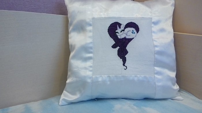 Подушечка с красоткой Рерити. Тут я вышивала просто на канве, а после сшила подушку. Кстати ткань взяла с маминого свадебного платья :D