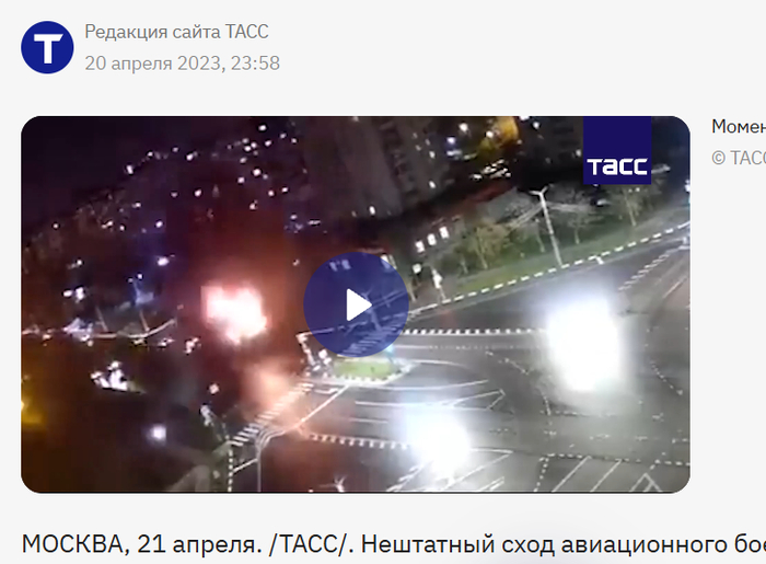 "20 апреля 2023 года около 22:15 мск при выполнении полета самолета Су-34 Воздушно-космических сил над городом Белгород произошел нештатный сход авиационного боеприпаса", - сказали в ведомстве.