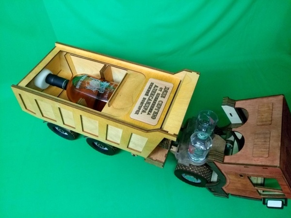 Резчик из Нижнего Новгорода по имени Александр Петрович производит оригинальные сувениры, взяв за основу автомобиль КАМАЗ. Он вырезает самосвалы из разных видов дерева, фанеры и шпона. Кузов грузовика служит емкостью для подарочного алкоголя, а в кабине грузовика, по задумке автора, размещаются стопки. Сувенир ручной работы пользуется популярностью: мастер просит за свою работу 5000 рублей.