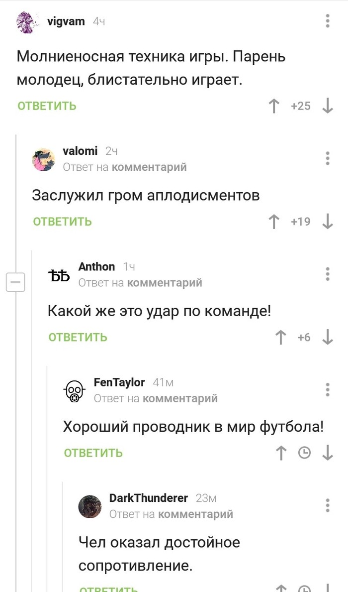 24 potatosupp Скриншоты комментов Молниеносная техника игры 5 лет назад Из поста с видео, где игрока ударило молнией во время футбольного матча #comment_173894070 @vigvam, @valomi, @Anthon, @FenTaylor, @DarkThunderer Показать полностью 1 Скриншот Комментарии на Пикабу Ещё 0