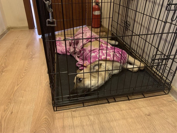Небольшое отступление. Девушка, которая взяла на себя все хлопоты, сначала привезла его домой, и попыталась передержку устроить у себя, но её собака эту идею "не поддержала" и поэтому он отправился на обычную платную передержку, где множество таких же как он собак, в бараках ждали новых хозяев. Много людей скидывали ей деньги на содержание пса, оплаты ветеринара (которого он обязательно посетил для осмотра), оплаты передержки.