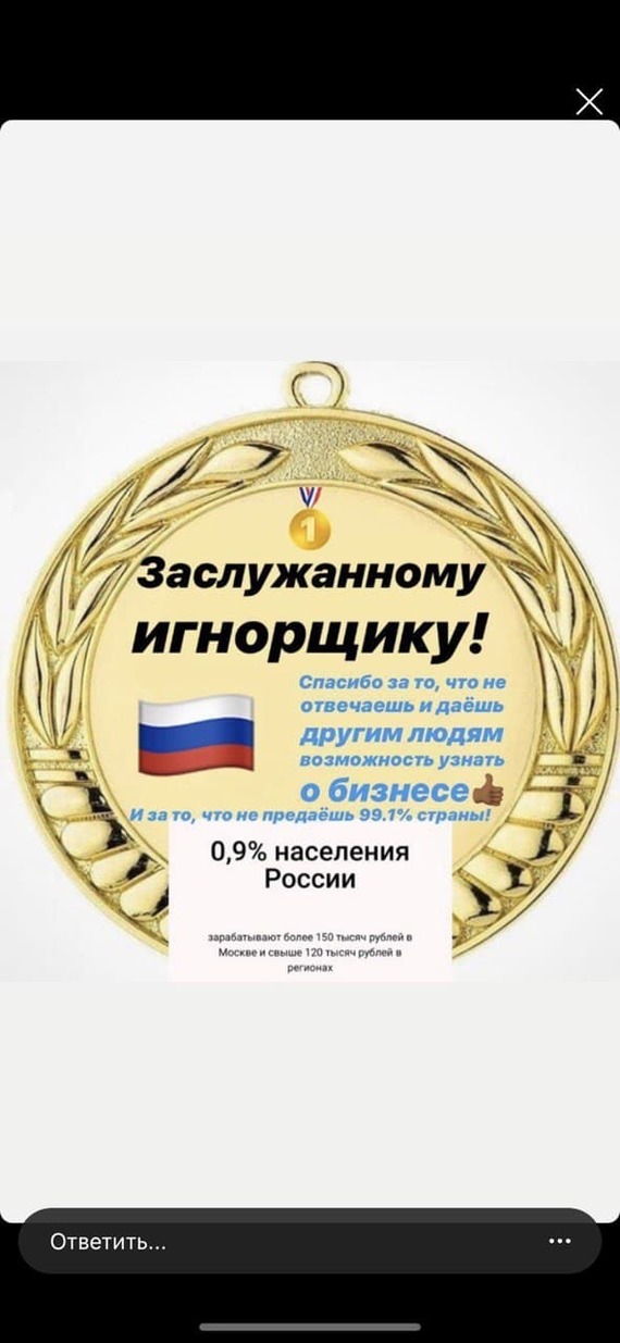 Постучался ко мне в директ в инстаграм некий мОлодец, с вопросом: ты из ЕКБ? А когда я ему не ответил, написал коммент к фотке: зайди в директ. Квест, не иначе! Я уже догадывался с какой целью он мне написал, посмотрев его профиль моя догадка подтвердилась пирамида\бизнес\вложисьхуйзнаетвчё, нужное подчеркнуть, своё добавить.