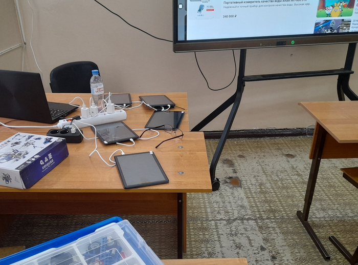 Наш преподаватель просто фанат своего дела, что даже свои наборы роботов из дома принёс, чтобы хватило на всех желающих.