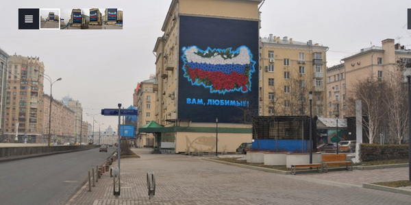 При этом в новостях подобный букетик за сегодня уже успел засветится и на одной из стен Московского Кремля, и на Таймс-сквер в Нью-Йорке. Как я понимаю закончить картинку на Валовой улице тоже хотели к сегодняшнему празднику 8 марта, но похоже за неделю не успели.