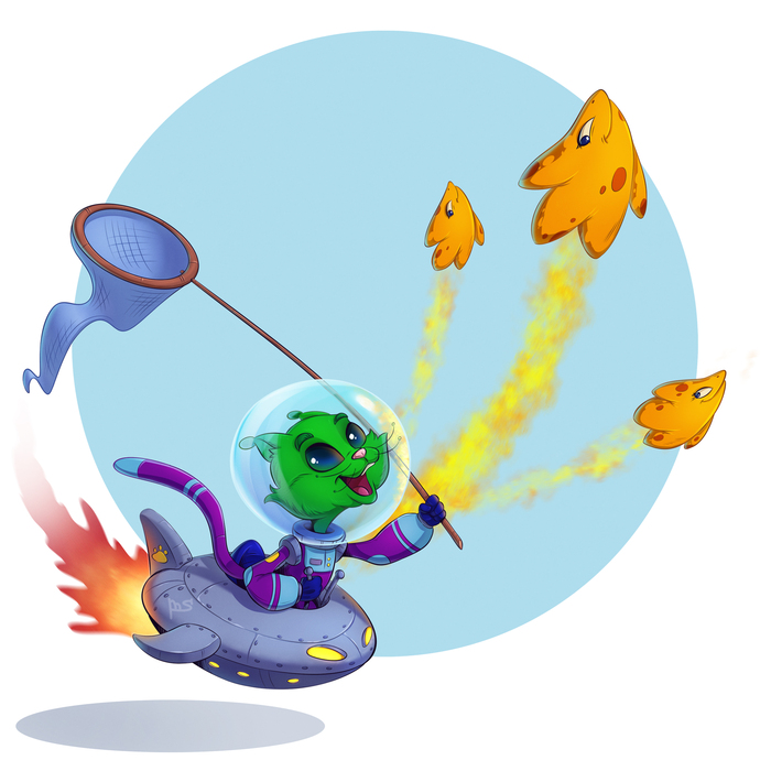Участвовал в челлендже "Дверь в лето" от школы CG LAB. Нужно было нарисовать 10 котов по разным темам за месяц.