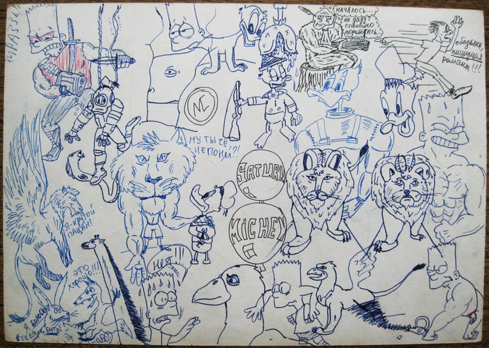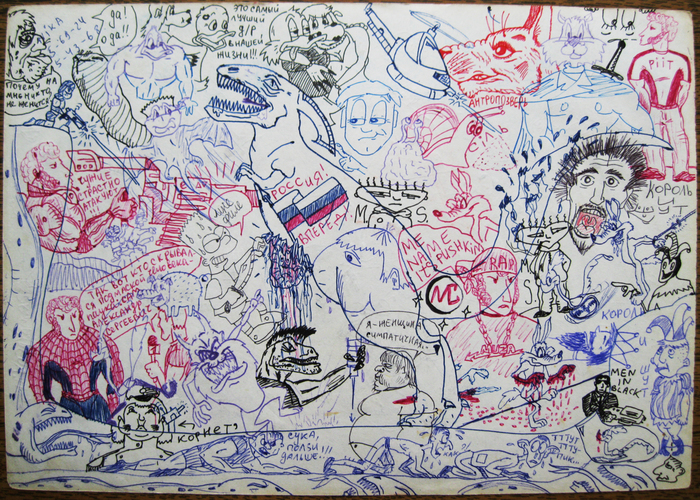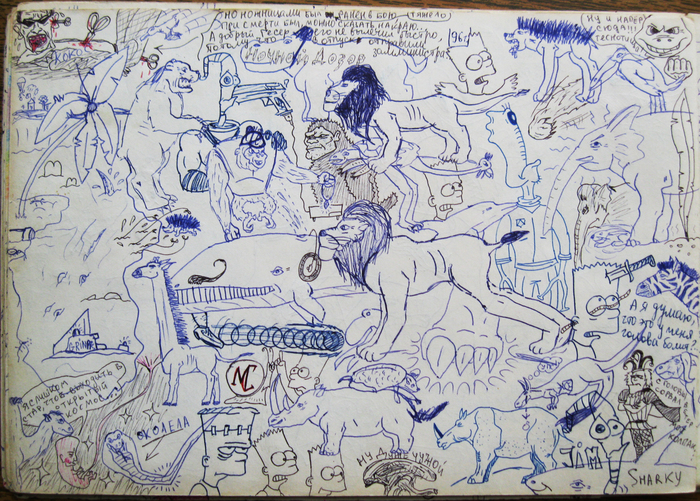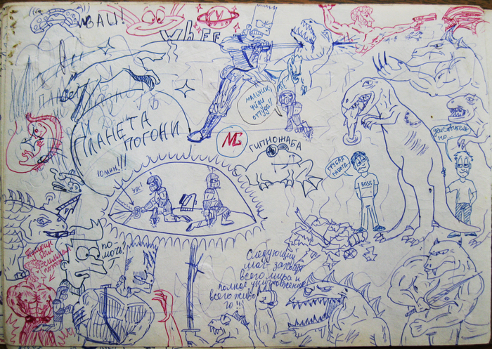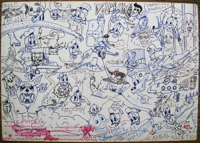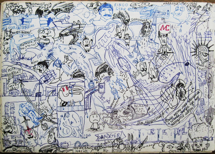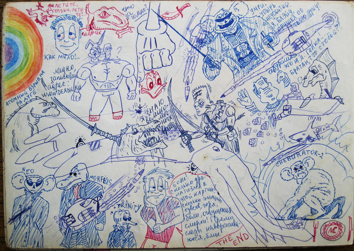 Был какой-то бзик: не оставлять на листке чистого места. Зарисованным должно быть всё пространство!