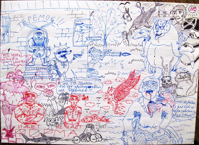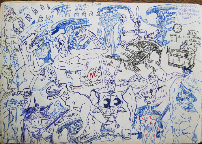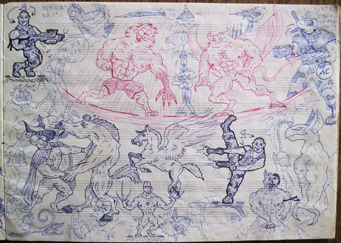 Откопал недавно свои старые рисунки конца 90х - начала 00х. О планшете с фотошопом тогда и знать не знал. Только традишка, только хардкор!