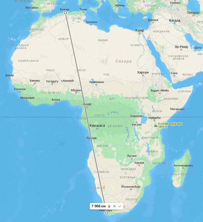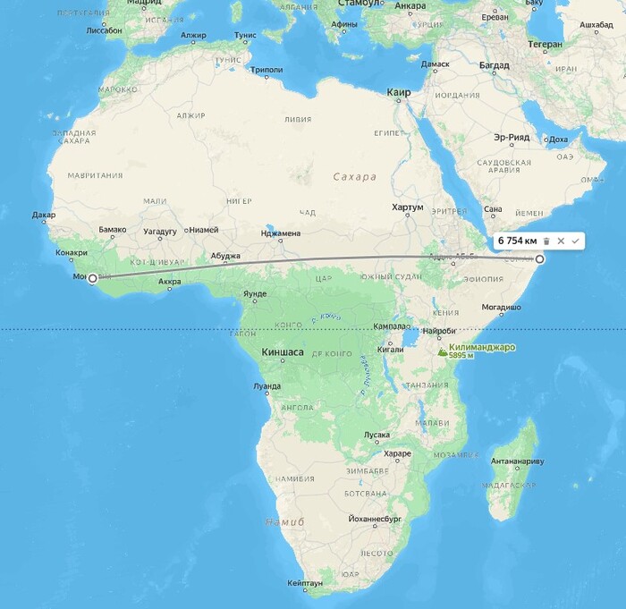 Всегда думал что Африка сама по себе не большой материк, не знаю почему, просто так казалось, видимо из-за её какой-то отсталости, 3-й мир все дела, но когда прикинул расстояния на карте, то немного удивился.