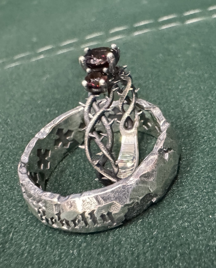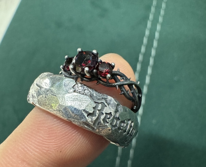 Кольцо из серебра с шипами и 3 красными гранатами. Делал на заказ, успел в стандартный срок, плюсики в карму получил, с пикабушником приятно пообщался.