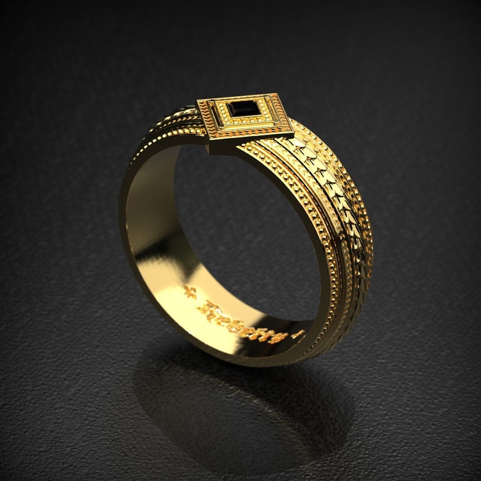 А тут более нейтральный вариант с черным камнем. Как перстень, кстати тоже смотрелось бы отлично, как мне кажется. А вот второй вариант этого же кольца, только под драгоценный камень, например черный бриллиант.