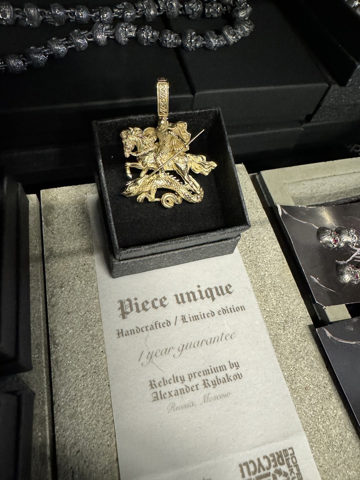 Великомученик считался покровителем воинов, земледельцев и скотоводов (поводом тому послужило описанное в житии чудесное оживление единственного вола у земледельца). В XI веке великий князь Ярослав основал в Киеве и Новгороде монастыри Св. Георгия. Его образ запечатлен на иконах, печатях, монетах, княжеской атрибутике. Вот так пишут в интернетах, но я считаю, что каждый вкладывает свой смысл и запрос в определенное изделие.