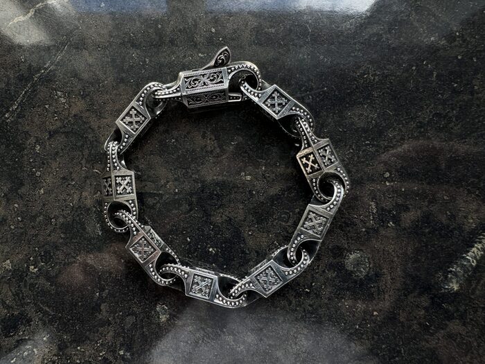 P.p.s. В коллекции моего бренда не только браслета. Есть много других изделий. Сейчас появилось много классных сережек, колец и часовых ремешков из серебра.