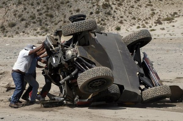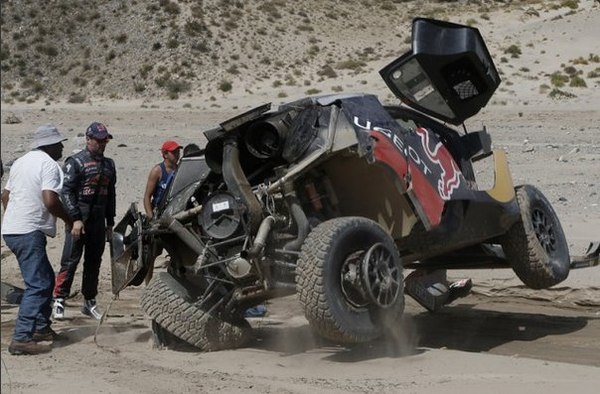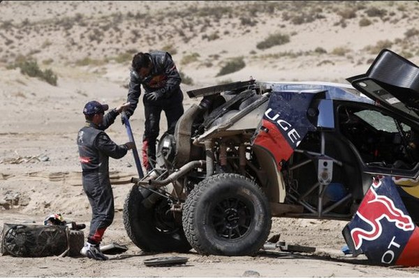 Главным событием дня в зачёте автомобилей стала авария Себастьена Лёба. Француз уверенно начал свой первый песчаный спецучасток на «Дакаре», но затем допустил ошибку и машина перевернулась через передний бампер. Хотя Peugeot получила серьёзные повреждения, он всё же смог добраться до бивуака с часовым отставанием. Однако продолжение борьбы для девятикратного чемпиона мира по ралли маловероятно.