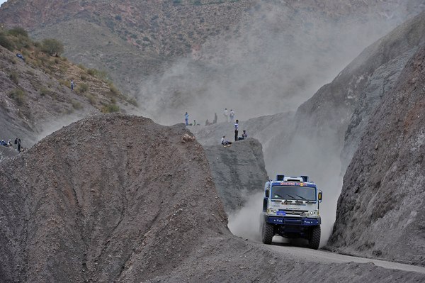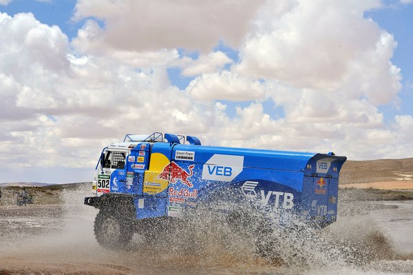 Смена лидера произошла и в грузовом зачёте. Этап выиграл Жерар де Рой на IVECO: он на две минуты опередил Эдуарда Николаева и на пять – Андрея Каргинова. Ещё один гонщик КАМАЗа, действующий победитель «Дакара» в этом зачёте Айрат Мардеев, к сожалению, выступил неудачно, проиграв сразу 17 минут. Ещё хуже обстояли дела у лидировавшего в категории Питера Верслуиса на MAN, он уступил 19 минут.