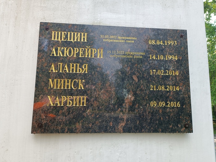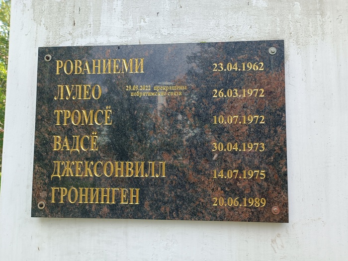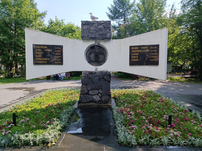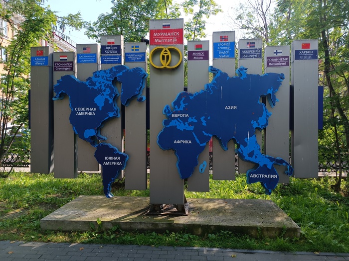 Он представлен в виде памятного знака в честь городов-побратимов города Мурманска. В центре знака — круг с эмблемой Всемирной Федерации породненных городов, изображением ключа и парой колец, которые означают союз. По бокам от круга — трапециевидные бетонные крылья почти пять метров в длину, на которых написаны города-побратимы Мурманска.