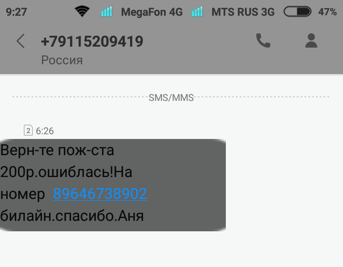 Вот читал много на Пикабу постов как якобы ошибаются с пополнением баланса мобильной связи. Думал не коснется меня рука этих мерзких человеков. Но нет сегодня с утра и мне прилетело.