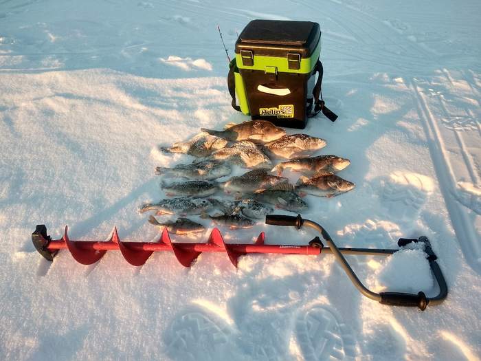 И ещё один маленький совет, если вы всё же нашли окуня, не стоит громко радоваться поклёвкам и размахивать руками, т.к. уже через пару минут к вам сбегутся все рыбаки с округи и будут сверлиться возле вашего ящика. Тихонько поймали, засунули в снег или карман и продолжаем наслаждаться одиночеством ;)