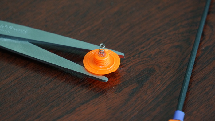 Второй момент, что необходимо обязательно сделать, это вклеить шестик в посадочное отверстие, так как в процессе ловли он может вылетать и доставлять огромные неудобства. Для этого нам достаточно маленькой капли суперклея.