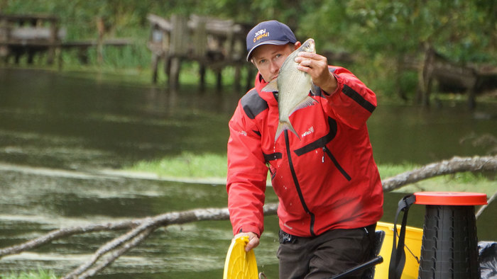 Спиннингисты привыкли брать с собой минимум вещей, чтобы быть более мобильными и меньше времени уделяют разным фидерным заморочкам. Поэтому спустя 5-10 минут Женя приступил к ловле и уже поимел хорошую лещовую поклёвку и досадный сход. Через пару забросов уже первые подлещики и густёрки были в подсаке, но размер не радовал.
