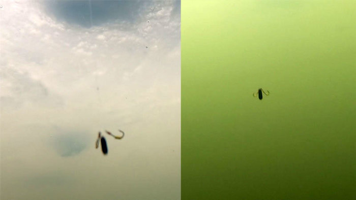 Фишка заключалась в том, что это был не просто длинный поводок из толстого флюрика, а к нему ещё предварительно привязывался дополнительный кусок флюрика потоньше, причём довольно большой длины. Толщина самого поводка была где-то 0.8-0.9 миллиметра длиной около полуметра, а толщина самого подлеска была примерно 0.5 миллиметра диаметром и длиной около метра, а то и полутора. Это не могло не броситься в глаза. Благо мы с гидом хорошо знали английский язык и смогли нормально пообщаться. Он рассказал, что давно пришёл к такому поводку. Не удивился он и тогда, когда я пожаловался на огромное количество выходов щуки к поверхности. Всё дело было в том, что в озере была очень прозрачная вода, дно было видно на глубине порядка 7-8 метров. И это не могло не сказаться на поведении щуки, которую было не так уж и просто уговорить на поклевку.