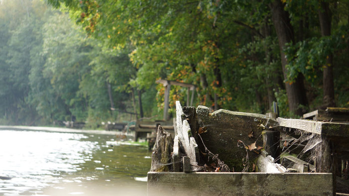 Час езды и мы на месте, довольно интересное и живописное место. Жёлтая опавшая листва под ногами придаёт особое настроение и предвкушение трофейной рыбалки. Огромное количество мостков, глаза разбегаются от такого выбора, хоть где-то он есть и совсем нет рыбаков, странно.