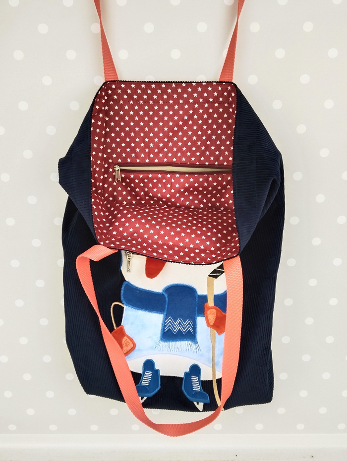 До этого у меня были волки тоже, но больше игрушки, чем рюкзаки. Был только один карман - рот. Туда особо ничего не входило, больше для красоты. Этот уже полноценный рюкзак, тоже для красоты, но еще и с функцией ношения предметов размером до А4 включительно. И рты у прошлых волков были просто замком с верхним рядом зубов. А этого решила сделать с яркой такой пастью, красной-красной, и с двойным рядом зубов.