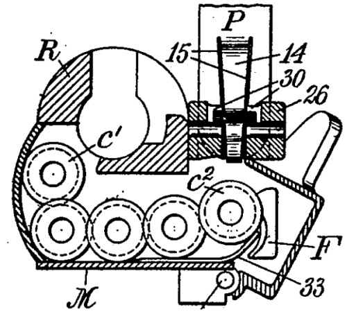 Между поршнем и пулей находилась жидкость, которая проталкивала пулю через канал ствола. Объем жидкости соответствовал объему канала ствола и поршень, переместившись до дульца гильзы, упирался в него и запирал пороховые газы внутри замкнутого объёма гильзы. При этом пыж вытеснял воду из гильзы, вследствие чего пуля двигалась по каналу ствола со скоростью истечения жидкости.Ввиду того, что вода, как и всякая жидкость, практически несжимаема, то скорость движения пули будет во столько же раз больше скорости движения пыжа, во сколько раз площадь поперечного сечения канала ствола меньше площади поперечного сечения гильзы (принцип гидравлического редуктора).