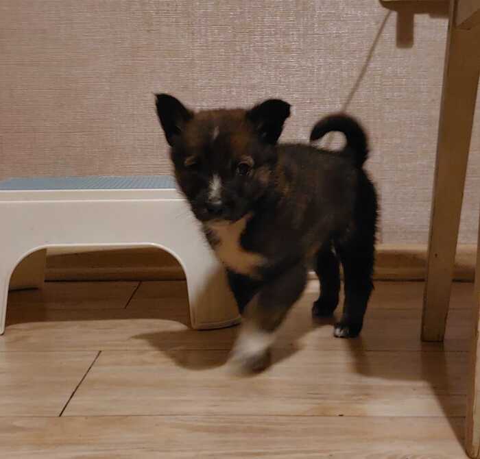 В октябре прошлого года мы взяли с улицы маленького щенка. Ему было всего несколько недель. Он был истощен,болел и всего боялся. Теперь он живёт у нас. Его зовут Тим. Он лайка. Теперь ему уже больше года,и он совершенно не похож на того маленького голодного щенка которого мы когда-то взяли с улицы.