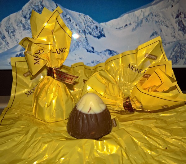 Далее, я вытащила еще один пакет. В этот раз обычный, но с необычным содержанием. Куча сладостей, среди которых теперь есть мой фаворит - конфета в форме заснеженной вершины. А ведь это так символично!