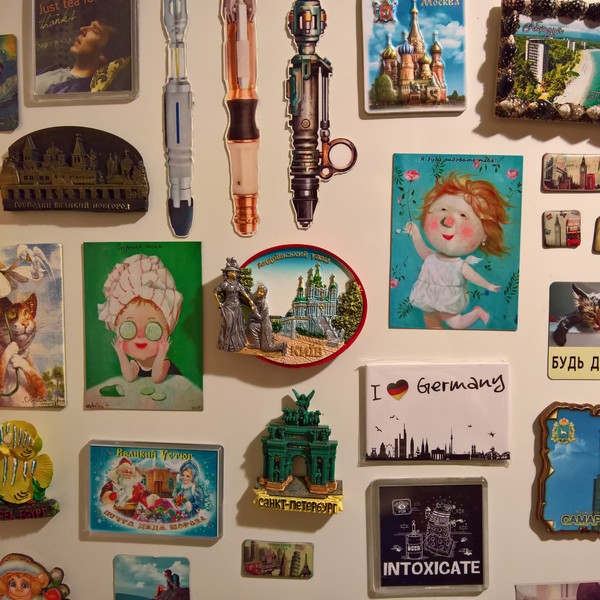 И-и-и... то, чего я ждала больше всего! Магнитики! И не один - эти милые девчата тоже прилетели из Киева! Естественно, они заняли центральное место в моей магнитной композиции.
