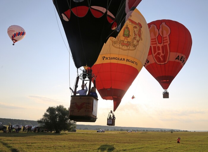 В эти дни в Рязани проходит фестиваль воздухоплавания "Небо России". Первая часть - спортивная. Пилоты соревнуются на точность, стремясь как можно точнее попасть в цель специальным маркером - мешочком с песком с длинной яркой лентой. Полёты происходят дважды в день - вскоре после восхода солнца и перед заходом. В это время атмосфера наиболее спокойна. С завтрашнего дня начнётся и развлекательная часть. Фестиваль продлится до воскресенья. Подробности можно узнать на сайте мероприятия, который легко найти обычным поиском.