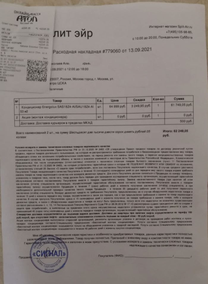 После получения этого чудесного прибора, оказалось, что менеджер Андрюха, слегка не досказал припизднул, что установка бесплатна, но нужно платить за комплект 6500 при условии, если установка будет в ближайшем ноябре или декабре, не смотря на то, что на дворе было начало сентября. А еще неуважаемый человек был слегка не прав, уверенно рассказав мне про характеристики, которые никогда не были присущи этой сплит-системе, но об этом я узнал, к сожалению, только когда добрый дядя-мастер уже установил сплит-систему куда надо. Искренне сожалею, что: