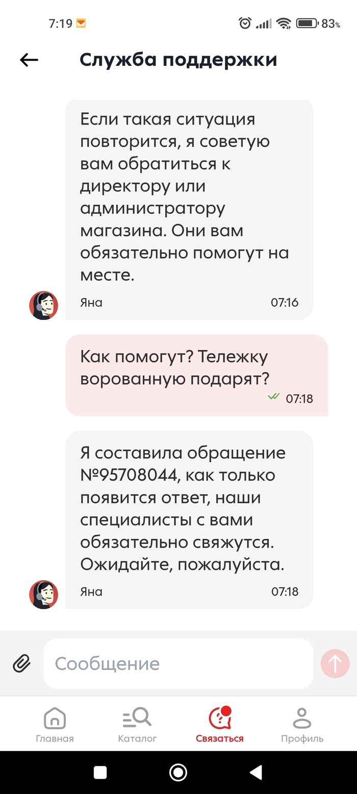 Пишу им еще раз, оператор поддержки говорит щас составим Обращение и получите ответ