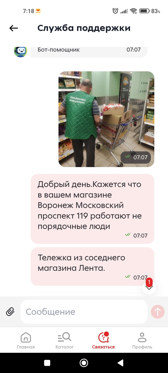 С сайта МагнитМаркет с вопросами предлагают перейти в их ТГ канал