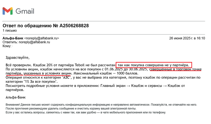 Всю эту портянку с кучей приложенных скриншотов и их же правилами акции в виде pdf отправляю и они формируют новое обращение