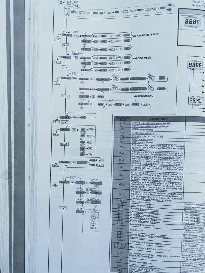Подаем питание, наконец работает, приступаем к настройке. Настройка и программирование вообще элементарные, не сложнее программирования Лего. Самое "сложное" здесь правильно выставить концевики в приводах, соответствующие положению открытой и закрытой створок (в каждом приводе их два - замкнуто при закрытом, замкнуто при открытом), но в целом, ничего сложного. Порядок установки параметров описан в виде дерева, очень наглядно и удобно - их много, но основные (схема открытия, скорость открытия, очередность, режим калитки и т.д.) собраны в начале раздела, очень удобно для быстрого запуска.